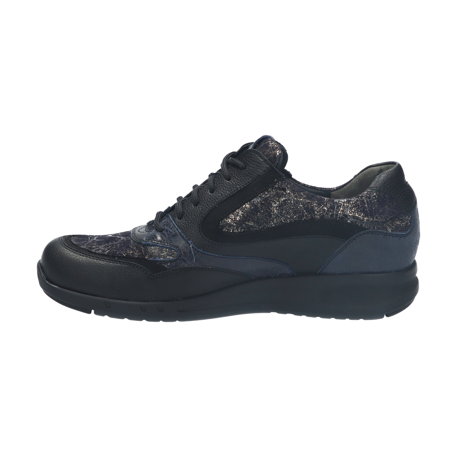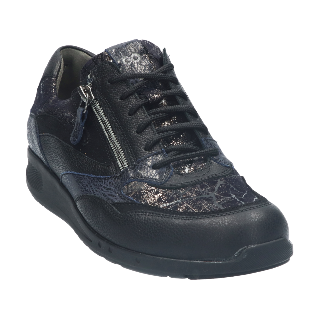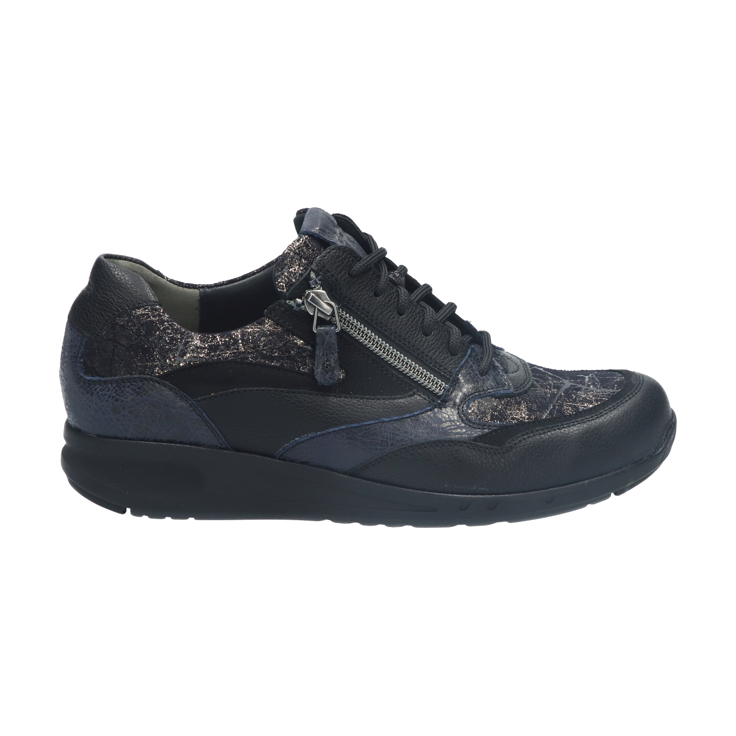 Het bovenwerk valt op door een spannende mix van materialen en een verfijnde afwerking. De afgeronde lijnen geven de sneaker een chic uiterlijk. Dankzij de veter-rits-combinatie is het model eenvoudig aan- en uit te trekken én goed af te stellen.