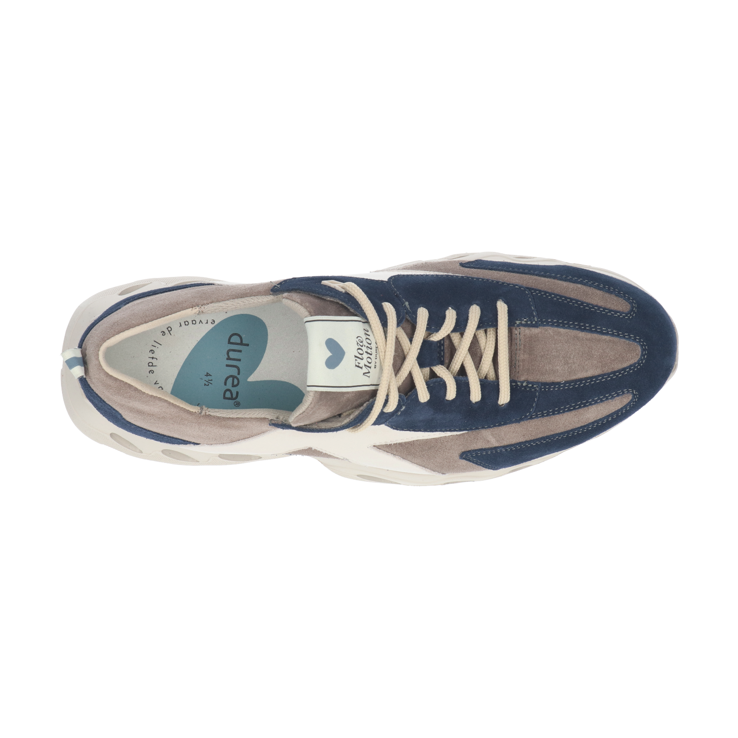 Licht, comfortabel, zacht, stabiel – alles komt samen in een design dat speels en futuristisch oogt en tegelijkertijd onmiskenbaar Durea is. Uitgevoerd in hoogwaardig suède, met oog voor detail: van het stijlvolle merkembleem op de tong tot het lusje aan de hiel. De vetersluiting biedt meerdere draagopties, tot bovenaan gestrikt of nonchalant met de bovenste ring overgeslagen.
