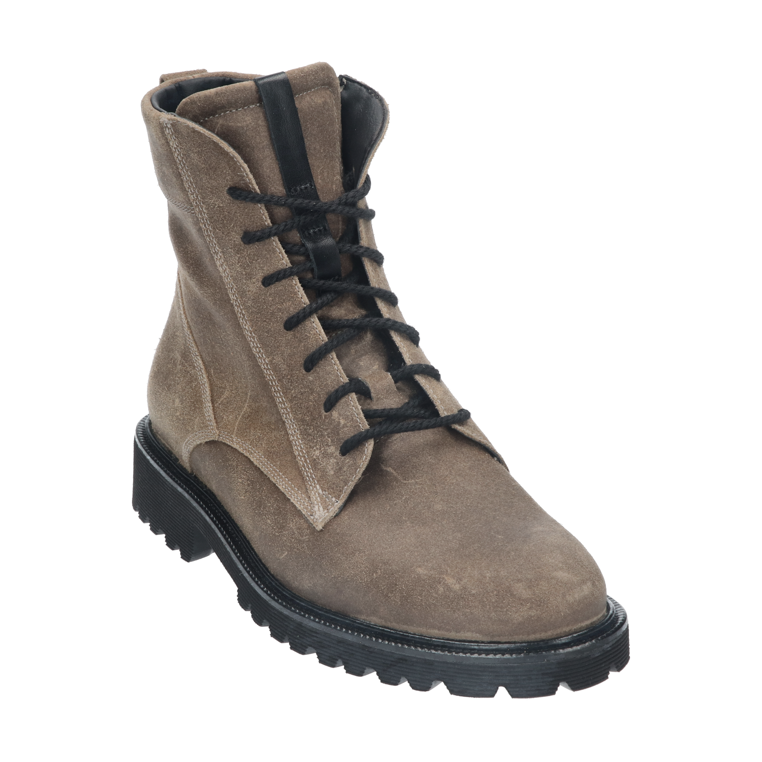 Outfits gecombineerd met dit enkelhoge veterlaarsje krijgen spontaan een coole uitstraling. Dat zit ’m in de stoere treklus op de achterbies, de zachte beschermkraag rondom de enkels en de hoge tong. Andere opvallende kenmerken zijn het profiel van de zool en de grove veters.