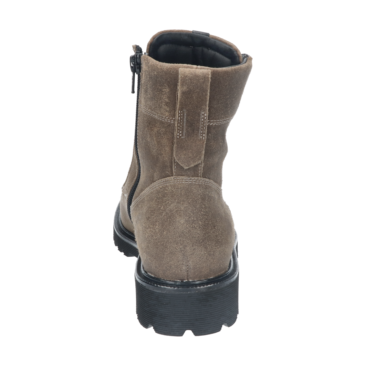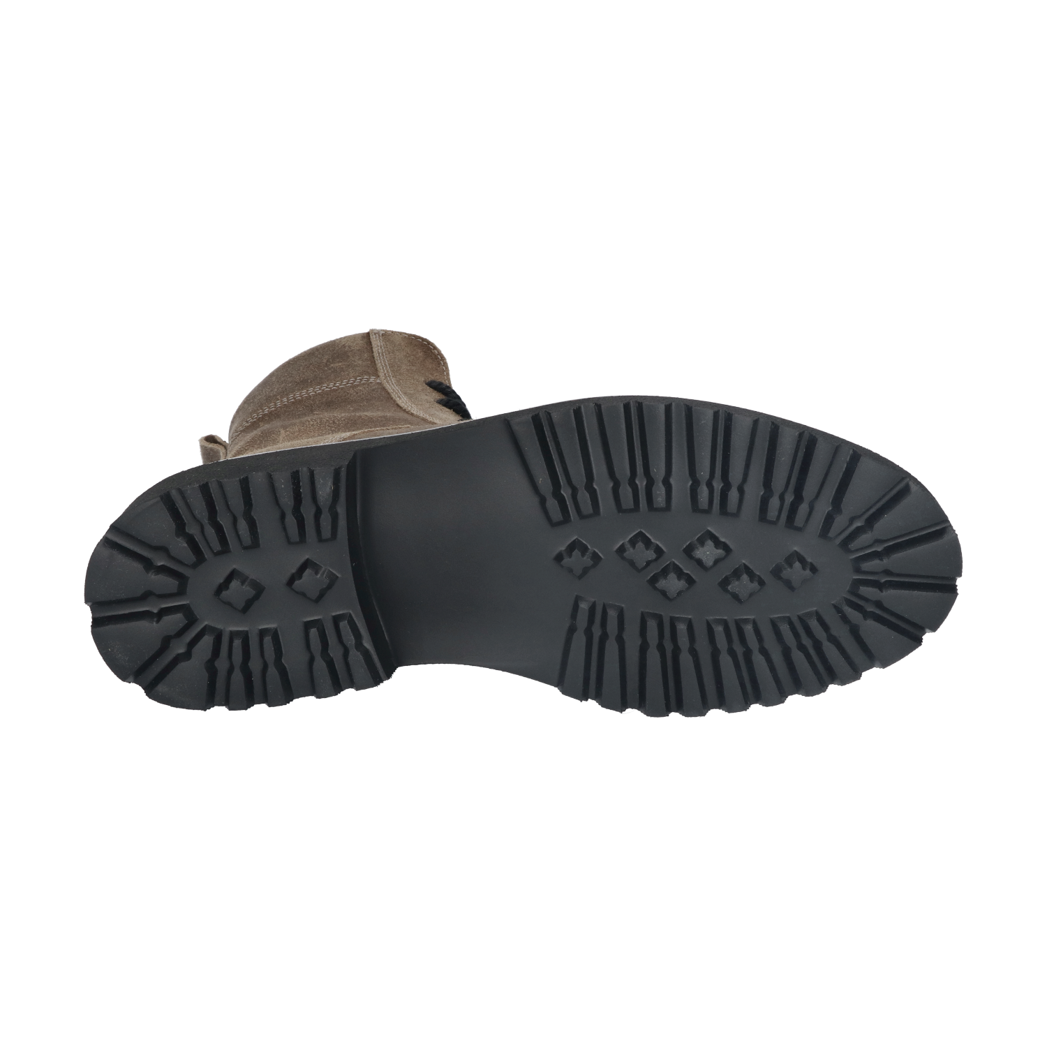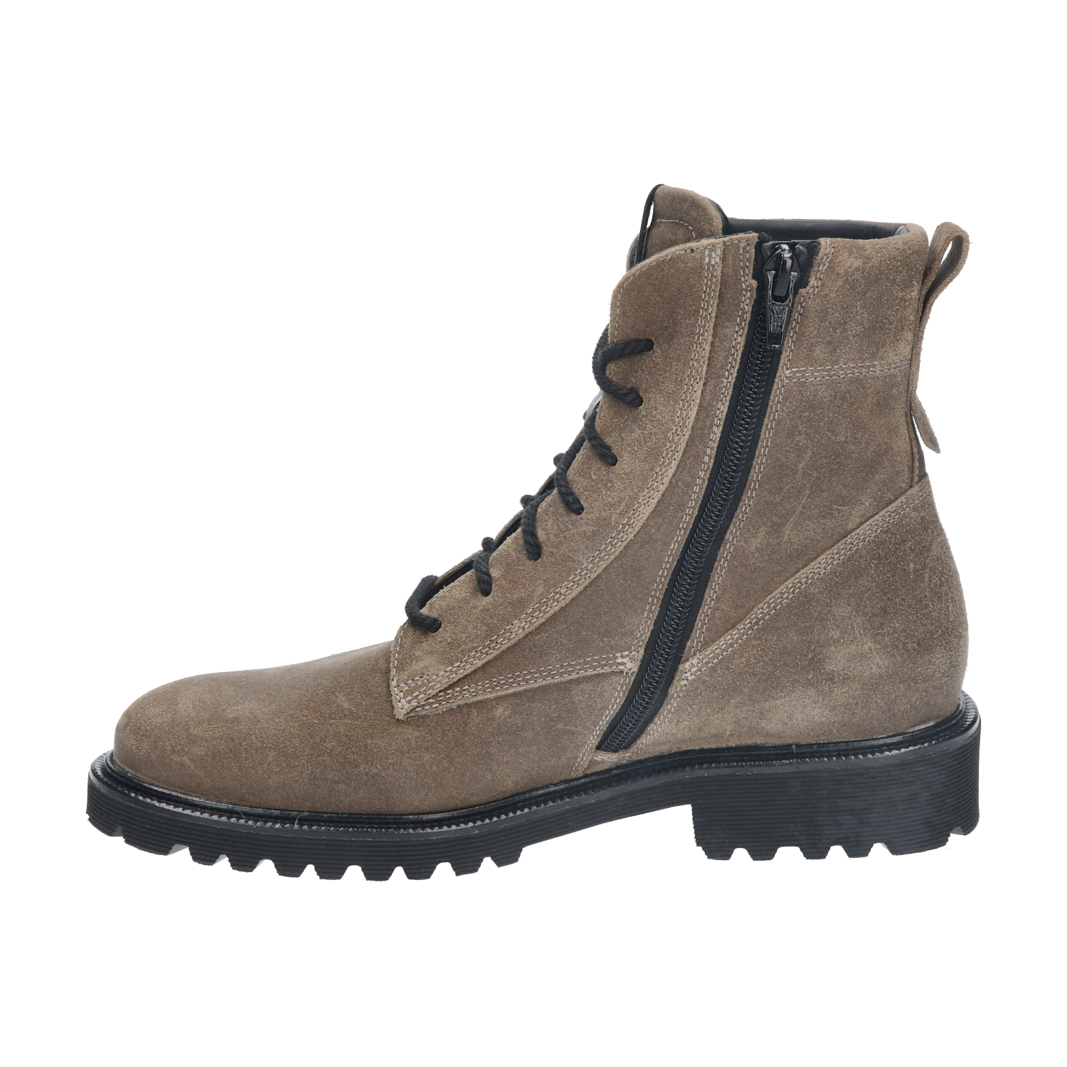 De dikke zool met grof profiel is helemaal van nu en uitgerust met extra dempend vermogen. De bescheiden hak biedt stabiliteit, terwijl de zool lichtgewicht en flexibel is. Dankzij de rits aan de binnenzijde trek je de laars bovendien gemakkelijk aan en uit.
